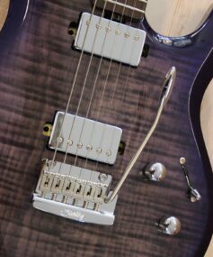 verblüffend nah am Original präsentiert sich die LK100. Ausgestattet ist sie wie das Vorbild Luke III mit Gain Boost und vielen weiteren professionellen Features : 12 db Gain Booster , 5-Weg Schalter für zusätzliche Single-Coil Sounds , sehr vielseitige Soundmöglichkeiten , beste Bespielbarkeit , extrem handlich , Linden Body , schöner Roasted Maple Neck mit Palisander Griffbrett Locking Mechaniken …..kurz und gut : viel Gitarre für`s Geld !!! auch optisch ein echter Knaller : wunderschön gemaserte Riegelahorn Decke in Blueberry Burst ( hier besonder schön – ORIGINAL BILDER ) ….. Normalpreis beim Großen T 1070.- hier NEU mit GARANTIE und kaum sichtbaren optischen Fehlern für nur 849.-