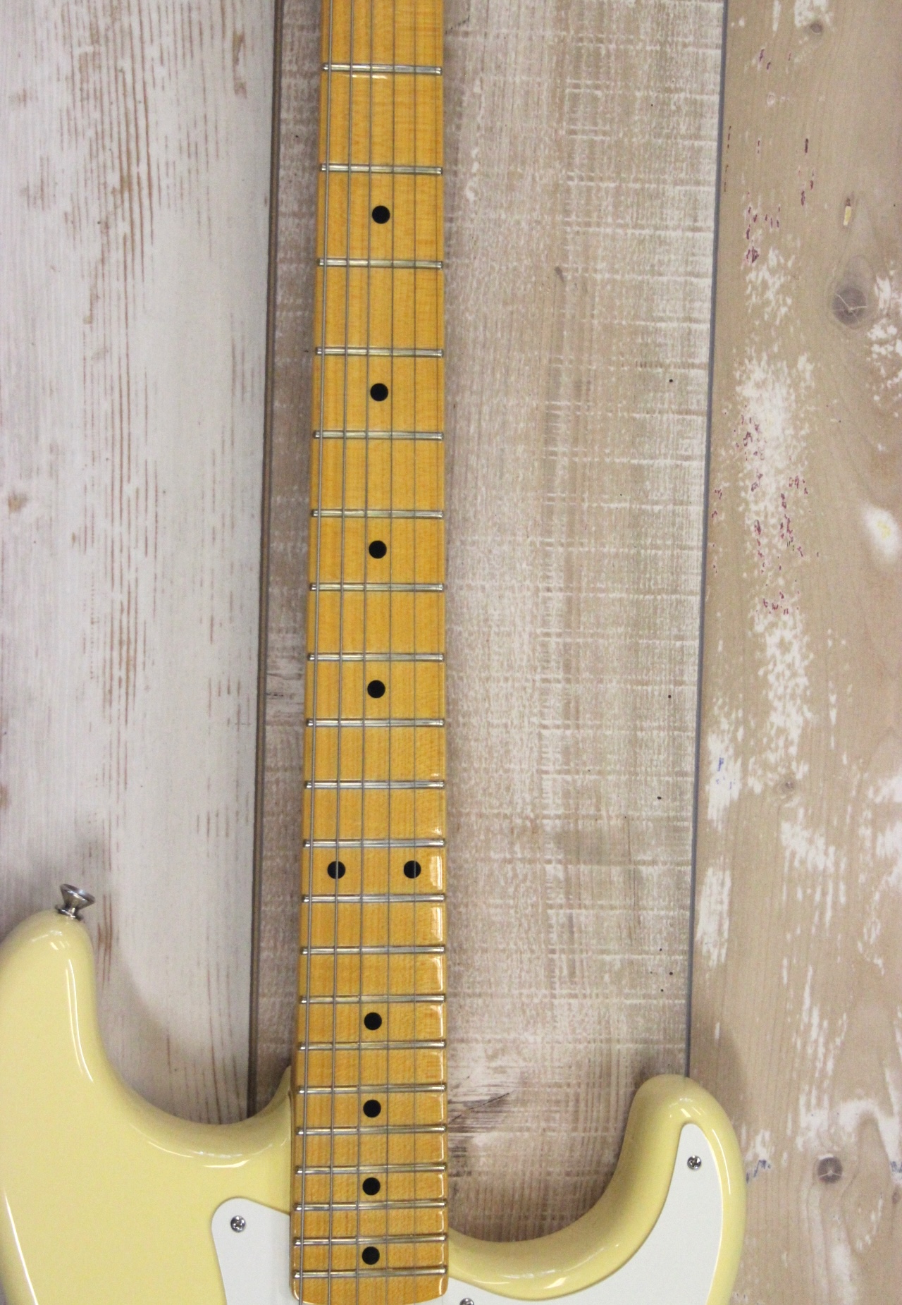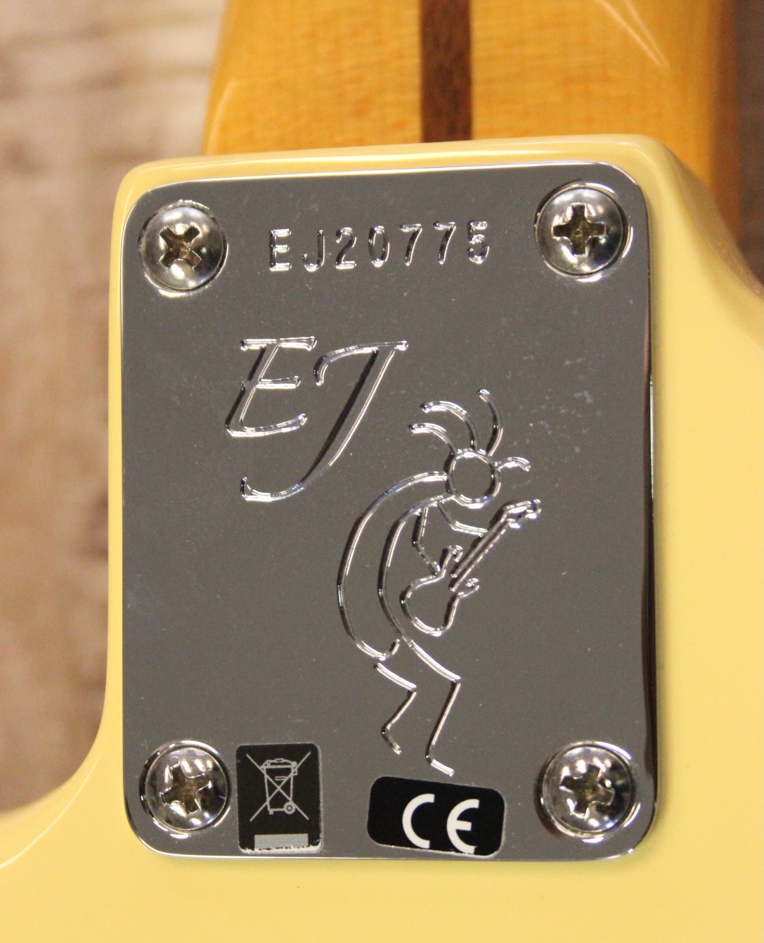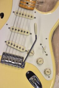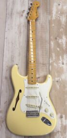 FENDER ERIC JOHNSON STRATOCASTER THINLINE : MADE in USA uns 1 A verarbeitet , absolute Rarität – wurde nur kurz gebaut , Erlenkorpus – Nitro Lack Vintage White , angenehm leicht – nur 3,1 Kg , Geschraubter Ahorn Hals – Griffbrett lackiert , Halsprofil 57 er Soft V , Radius 12 “ , Super leichte Berspielbarkeit bis in die höchsten Lagen , 3 ERIC JOHNSON SIGNATURE PICKUPS sorgen für oberamtlichen Sound …. die Strat wurde kaum gespielt und ist bis auf eine kleine Druckstelle an der Seite ( siehe letztes Bild ) fast im Neuzustand ….. hier für 2199.- inclusive Original-Case und Zertifikat
