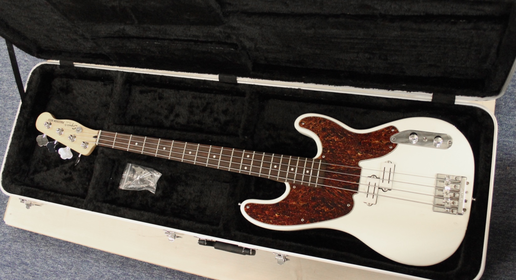 FENDER / SQUIER MIKE DIRNT BASS : Seltener und beliebter Signature Bass , Super Saitenlage und leicht bespielbar, nur 3,45 Kg Gewicht , technisch top – optisch mit Druckstellen und Lackschaden ( siehe Bilder ) an der Rückseite ( trotzdem von vorne ist der Gesamteindruck gut ) , Nachgerüstet und stark aufgewertet : Fender High Mass Bridge ( Bad Ass Style ) für mehr Druck und Sustain – DiMarzio USA DP 127 Bass Pickup für deutliche Klangverbesserung … und das sogar noch splitbar für coole Singlecoil Sounds ( die Original Pickups sind auch noch dabei ) ….. ein toller Bass für relativ kleines Geld komplett justiert und für nur 479.- inclusive J & D Koffer