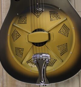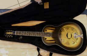 PARAMOUNT TRIOLIAN 1929 MIDNIGHT GLAM : RESTPOSTEN zum ca. HALBEN PREIS : Die Triolian wurde erstmals im April 1929 vorgestellt . Die PARAMOUNT Triolian 1929 entspricht in ihren Dimensionen dem Original und hat einen Holzkorpus, Im gegensatz zu vielen blechern und dünn klingenden Resonator Gitarren glänzt sie durch einen fettem und erdigen Sound . Der typisch fleischige Hals ist trotzdem leicht zu bespielen …. besonderen Charme entwickelt die Triolian bei Blues , Open Tunings , Fingerpicking oder Bottleneck …. das alles nur für 539.- inclusive luxuriösen Lederartigen Case ( mit Rückengurten )