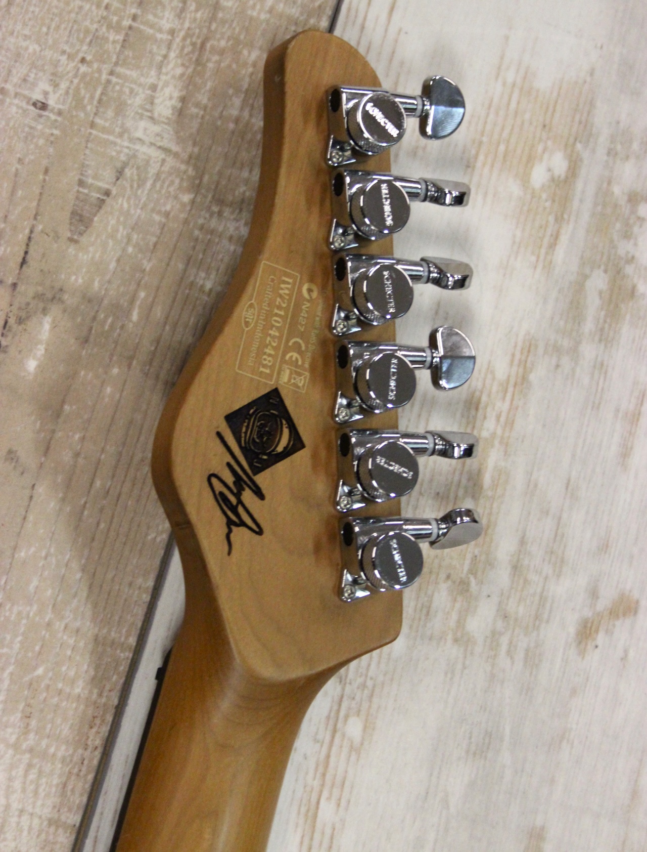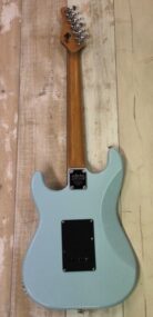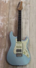 SCHECTER NICK JOHNSTON HSS : Erlenbody mit geschraubtem Ahorn ( Roasted Maple ) Hals , Palisander Griffbrett – sehr gut bundiert , dadurch angenehm leichte Bespielbarkeit bis in hohe Lagen , dünnes C Halsprofil , 2 Schecter Single Coils sorgen für klassischen Strat Sound – 1 Schecter Diamond Humbucker für mehr Druck in der Bridge Position – der ist sogar noch splitbar für schöne Singlecoil Sounds , Vintage Tremolo , Locking Mechaniken und Graph Tech Black Tusq Sattel für sichereres Tuning ….. eine tolle und moderne Strat , die nicht umsonst beim großen T 1150.- im Netz kostet …. hier gebraucht mit einigen Druckstellen ( siehe auch 3. Bild ) aber technisch TOP für nur 569.-
