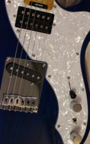 Die faszinierende Geschichte und Geburt der Marke BLADE begann 1968 in Gerry Levinsons Gitarren Werkstatt. Nach unzähligen Gesprächen mit Musikern kreirte er eine Gitarre, die sich durch zahlreiche patentierte und innovative Entwicklungen zur Mutter der modernen Single Coil Gitarre entwickelte. Durch die patentierte Variable Spectrum Control (VSC4 – für jeden Geschmack individuell justierbar) waren sie erheblich variabler als die klassischen Fender Gitarren. In den 90er Jahren waren sie legendär und wurden von vielen bekannten Musikern gespielt. Inzwischen ist Blade zurück auf dem Markt und bietet ein breites Portfolio an T- und S- Modellen, die -je nach Bauland- (China, Korea, Tschechien) von ca. 1000,- bis 3000,- reichen. Die Delta Thinline besticht durch ihre Top Verarbeitung , leichteste Bespielbarkeit klassischen Sound und große Soundvielfalt ( der Humbucker ist per Push/Push Poti zu splitten ) , Gewicht nur 2,95 Kg … superleicht und eine echte Schönheit …. technisch TOP – optisch mit ein paar Spuren …. Neupreis 1490.- hier gebraucht für nur 799.-