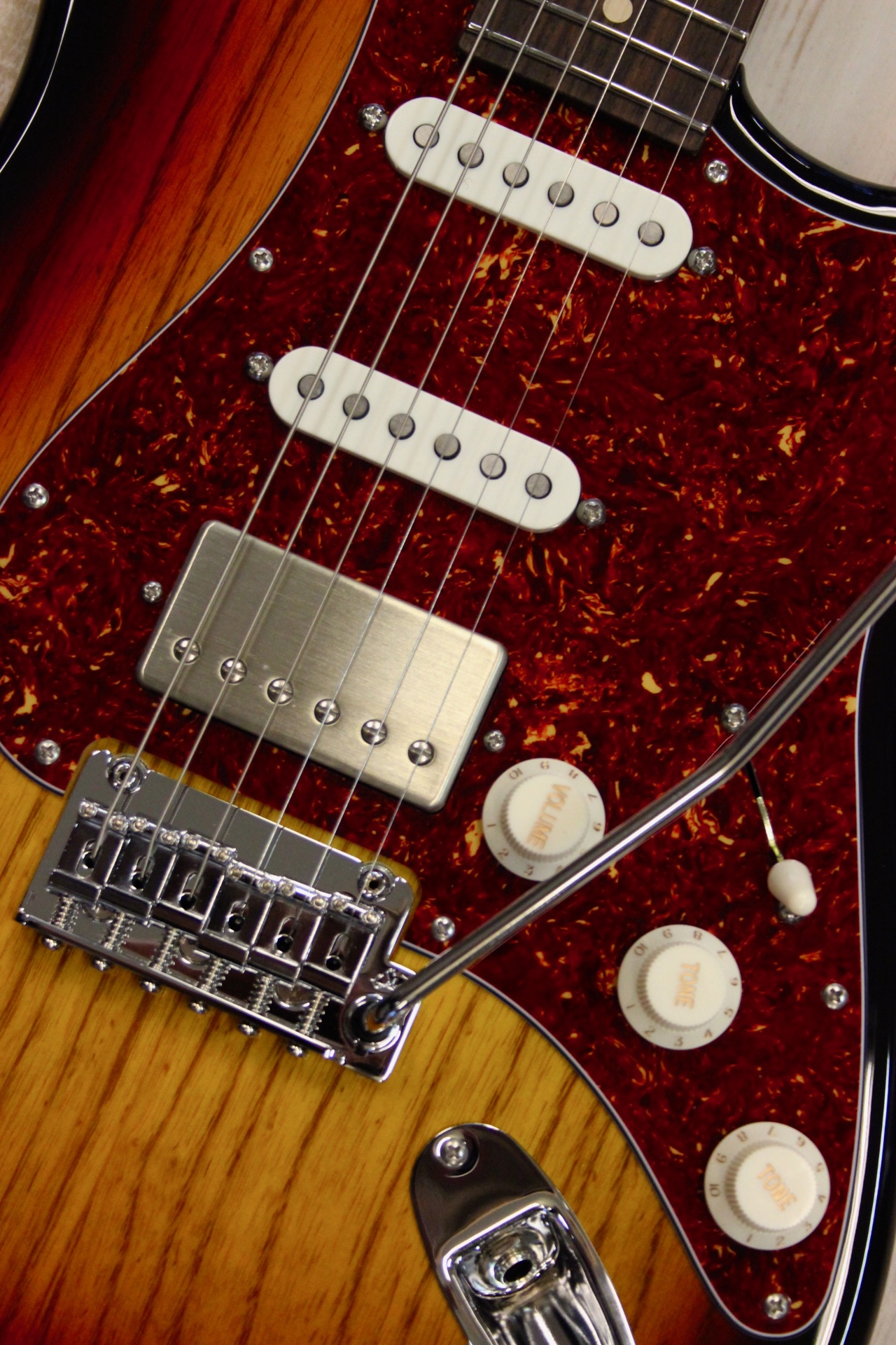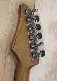 SUHR CLASSIC S LTD ROASTED FLAME MAPLE – SSH PICKUPS : Made in USA und traumhaft verarbeitet , Sumpfeschenkorpus – mit Nitrolack Sunburst lackiert und toll gemasert , hier als Besonderheit ein schöner Roasted Flame Maple Hals ( normal gibt es nur einen normalen Ahorn Hals ohne auffällige Maserung – Roasted Flame Maple ist natürlich deutlich teurer ) Halsprofil: 60’s C Vintage STD 830 – 930 , Griffbrett Palisander , 22 Stainless STEEL Medium Bünde – Spielspaß ohne Kerben , Sattel: Graph Tech TUSQ , Sattelbreite: 41;9 mm (1,65″) , SSCII Silent Single Coil System reduziert 50 & 60 Hz Netzbrummen ohne Auswirkung auf den Ton , keine Batterien, nur transparente Brummunterdrückung , Tonabnehmer: Suhr SSV black Humbucker (Steg) und 2 Suhr V60 LP Single Coils (Mitte und Hals) , Suhr Tremolo mit Stahlblock ( bessere Schwingungs Übertragung und Sustain ) – läuft sehr gut , Suhr Locking Mechaniken , Traumhafte Bespielbarkeit und großartiger Klang , 3,6 kg …. hier für 3690.- inclusive Luxus Gigbag NEU mit GARANTIE