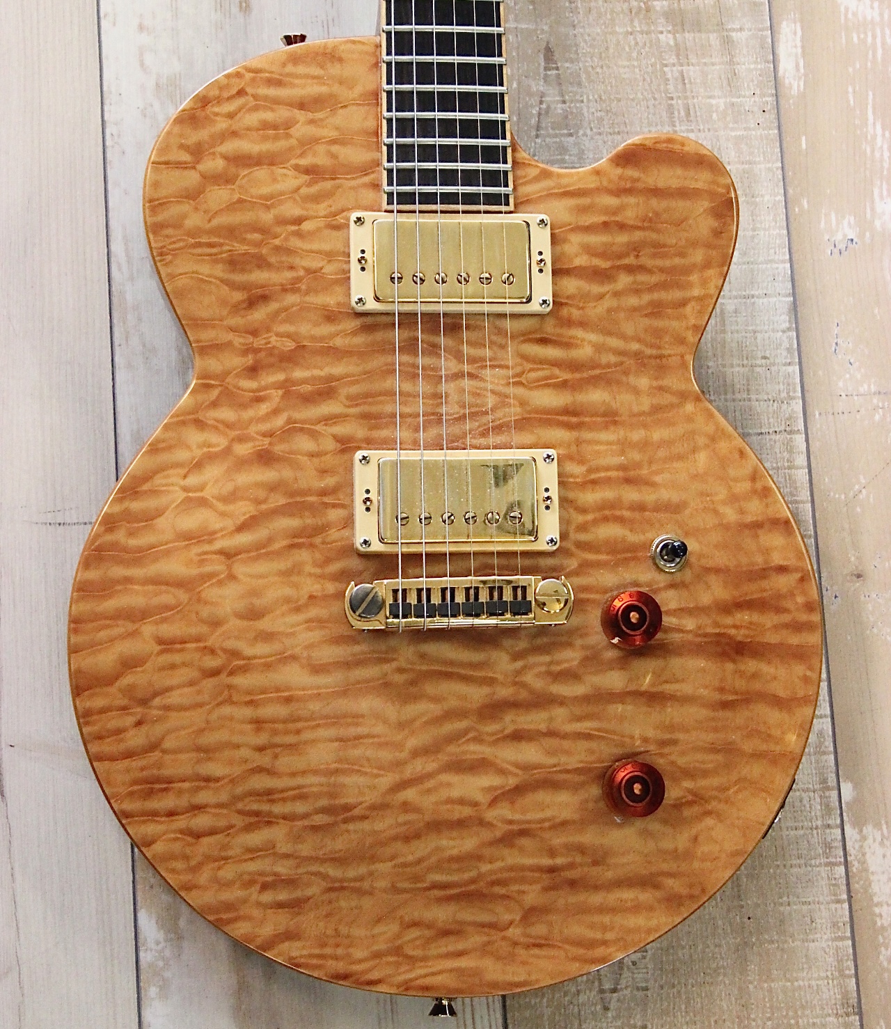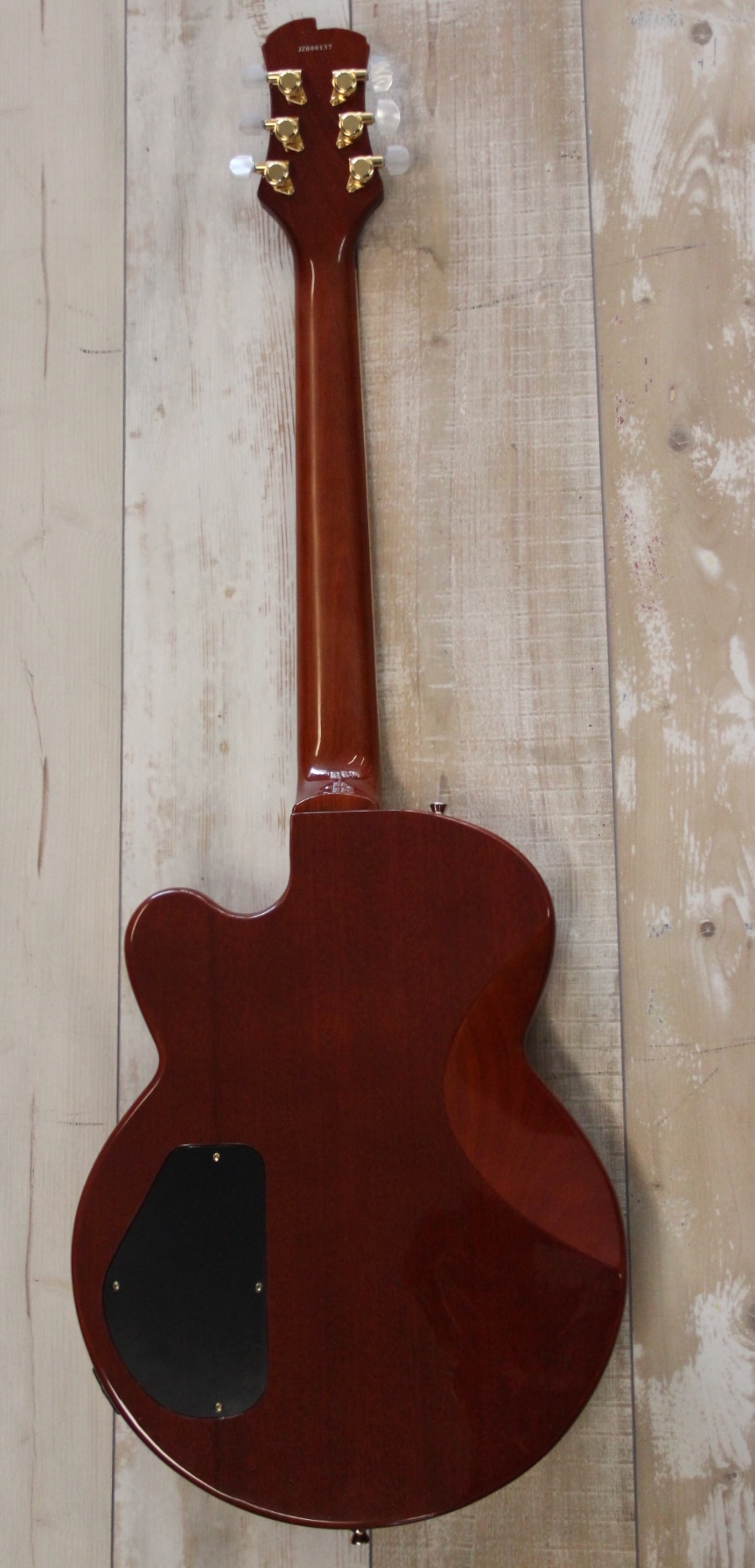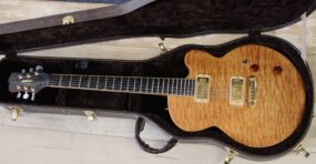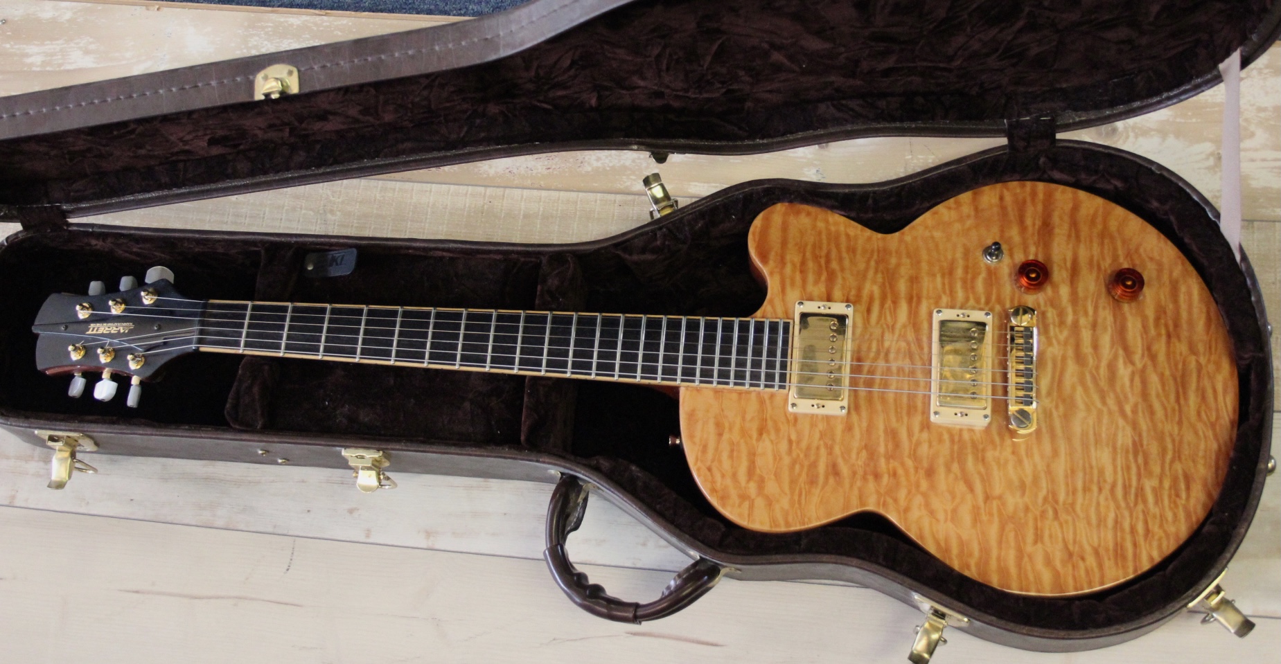JARRETT PAULA – HANDMADE in USA : build in Westport CT / USA und sehr selten , prämierter Master Builder , Mahagoni Body mit Wölkchenahorn Decke – traumhaft schön ( Siehe Bilder ) , eingeleimter Mahagoni Hals mit Ebenholz Griffbrett und schönen Bindings – extrem leicht zu bespielen , 3,6 Kg Gewicht , Jim Walker Pickups – auch sehr selten , top Bespielbarkeit , guter technischer und optischer Zustand , sehr selten hier in Deutschland und normal viel teurer ….. hier für nur 1390.- inclusive original Luxus Case