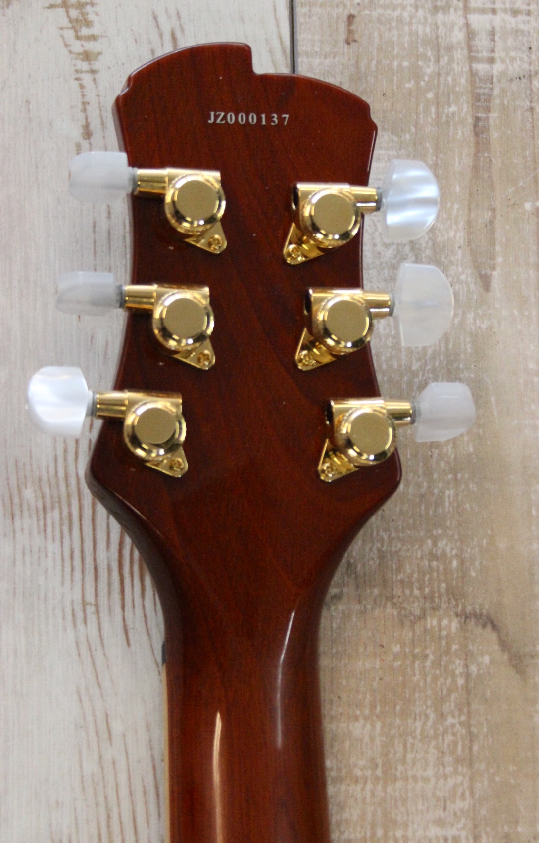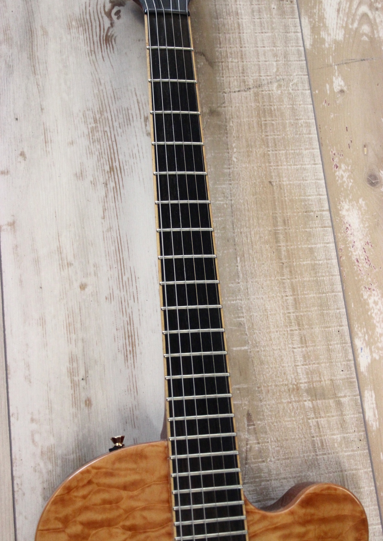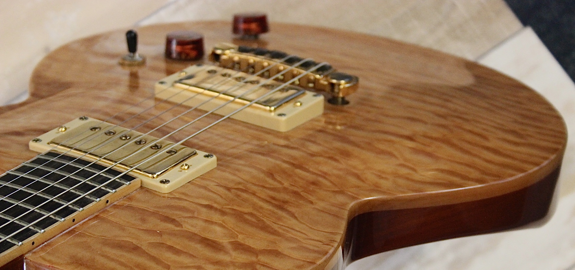 JARRETT PAULA – HANDMADE in USA : build in Westport CT / USA und sehr selten , prämierter Master Builder , Mahagoni Body mit Wölkchenahorn Decke – traumhaft schön ( Siehe Bilder ) , eingeleimter Mahagoni Hals mit Ebenholz Griffbrett und schönen Bindings – extrem leicht zu bespielen , 3,6 Kg Gewicht , Jim Walker Pickups – auch sehr selten , top Bespielbarkeit , guter technischer und optischer Zustand , sehr selten hier in Deutschland und normal viel teurer ….. hier für nur 1390.- inclusive original Luxus Case