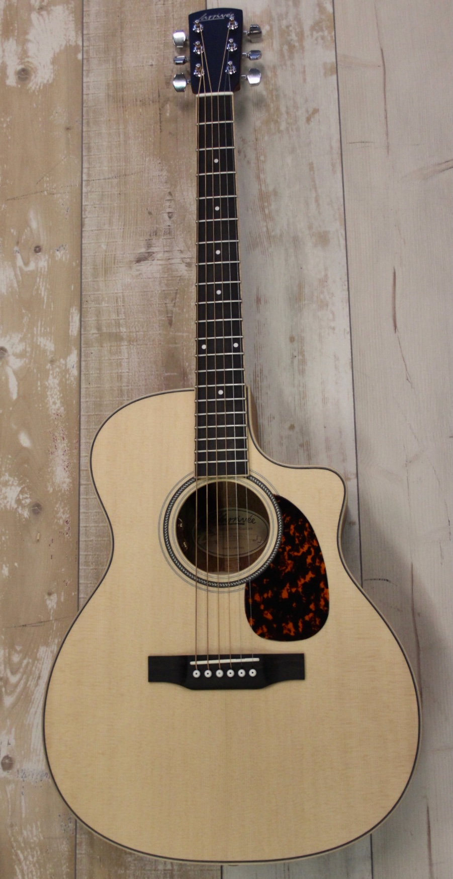 LARRIVEE OMV-03E : MADE in USA und Top verarbeitet , klassische Orchester Model Form mit Cutaway , Decke: Kanadische Sitka-Fichte , Boden & Zarge: massives Mahagoni , natürlich vollmassiv , Mahagoni Hals mit Ebenholz Griffbrett , Rosette: Herringbone , Ahorn Bindings , Sattel & Stegeinlage: Knochen , Sattelbreite 44,6mm , angenehmste leichte Bespielbarkeit , unglaublich voller Klang – erst recht für die geringe Größe , ebenfalls Profisound am Verstärker dank L.R.Baggs Stage Pro Element Pickup …. Normaler Preis im Netz 4000.- hier wegen Vertriebswechsel als NEUE A-WARE mit GARANTIE für nur 2649.- inclusive Luxuscase