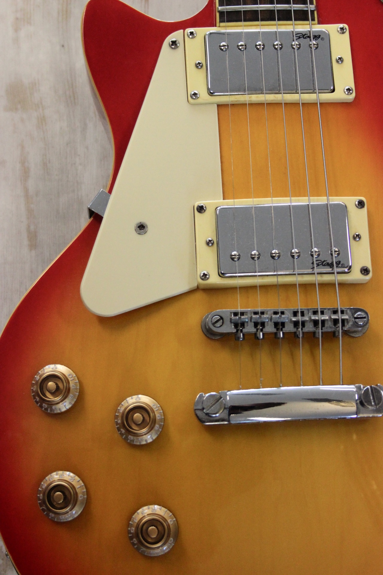 STAGG PAULA LEFTHAND : perfekte Einstiegs Gitarre , bessere Stagg Serie ( Neupreis 450.- ) , super Zustand – bis auf den Lackplatzer auf der Decke ( siehe Bilder ) , angenehm leichte Bespielbarkeit – von City Music komplett neu justiert , warme und fette Sounds , seltenes Schnäppchen für Linkshänder nur 229.-